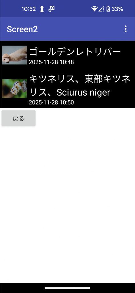- ブロック編集:Screen2では小型DBから履歴リストを取得してリストビューに表示