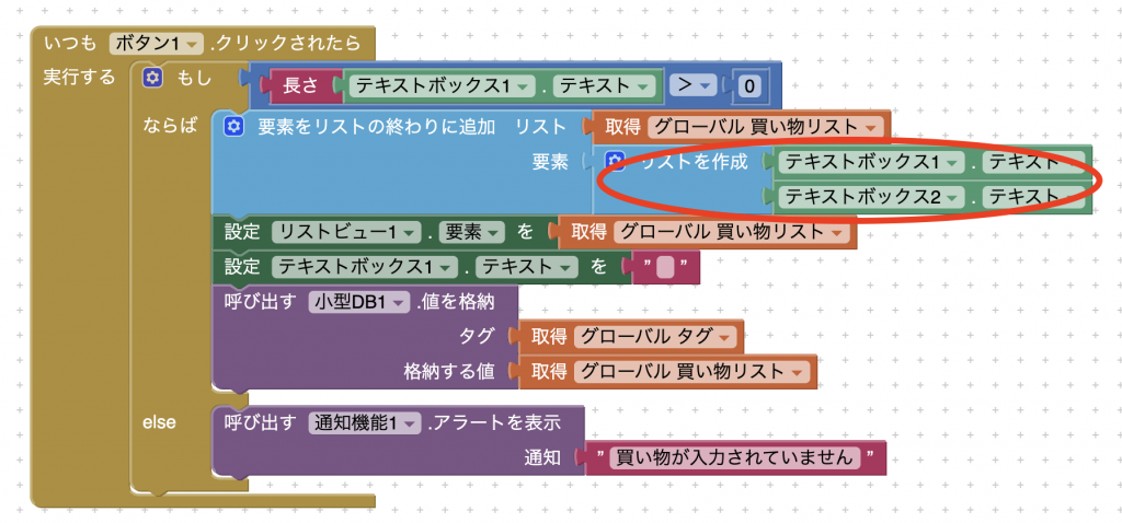 - ブロック編集:項目追加時に価格を含めてリストに追加。リストのリストを小型DBに保存