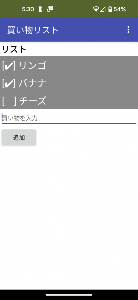 - リストビュー で、チェックを買い物に追加